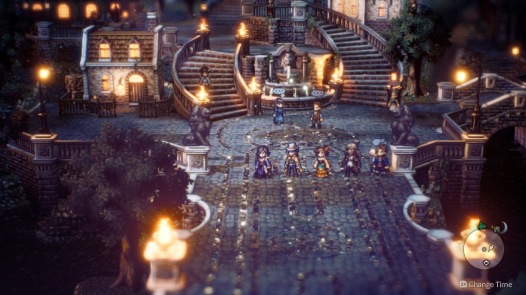 Also, the screen shots here don’t even begin to do it justice, but this game has some absolutely stunning 2D graphics. The HD-2D style as its called, adds modern lighting and effects to a SNES style artwork for what can only be called a stunning effect. Water ripples, lights glisten…its truly amazing….especially when you consider that all of this is being squeezed out of a Nintendo Switch, which at this point is a lot closer to an Android box power wise than a PS5.